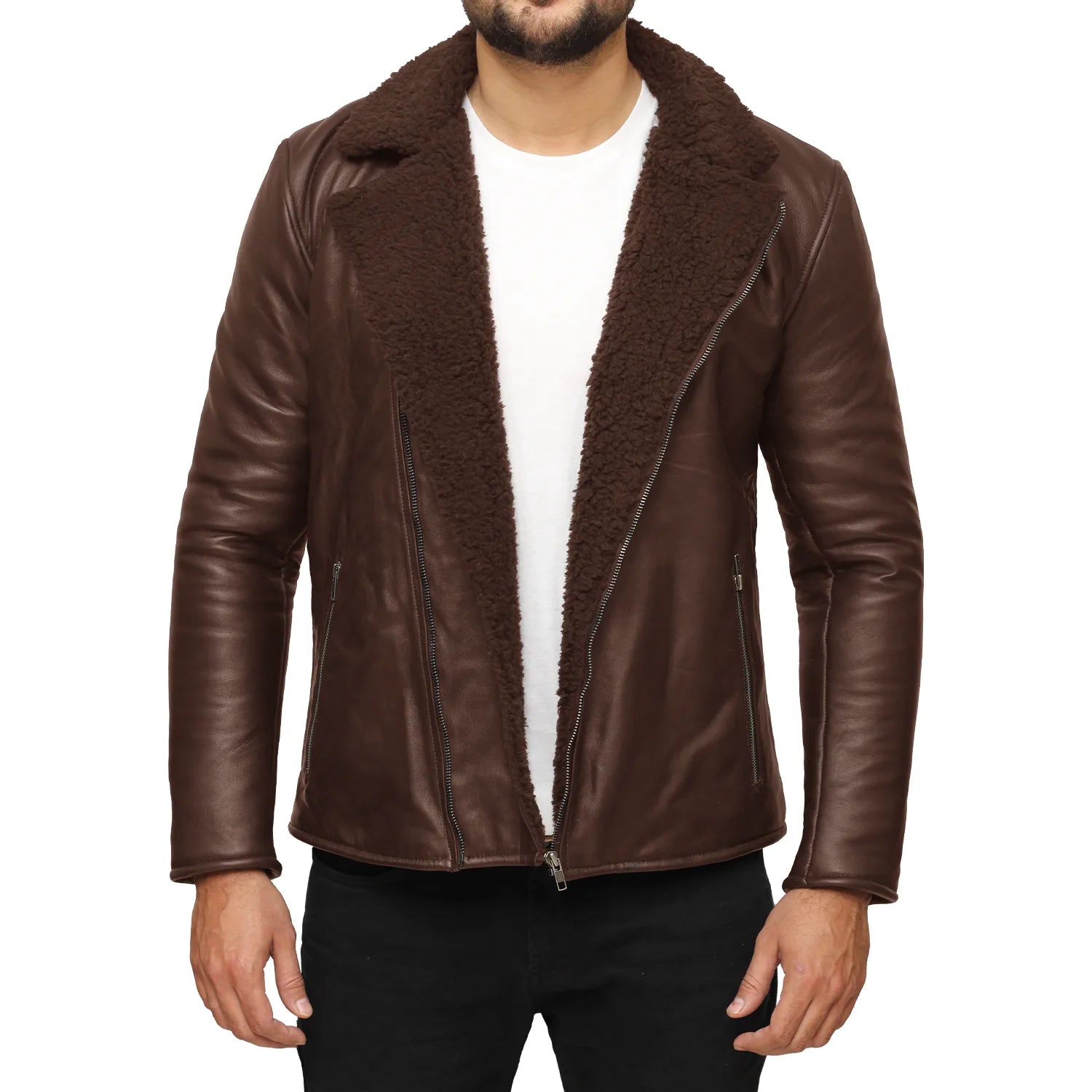 What keeps your leather jacket high is its quality, that's why the Ezekiel Brown Shearling Leather Jacket is fabricated from standard-grade material with expert tailoring.