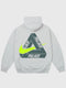Turn this Palace Nike 2025 Tri Swoosh Latest Charcoal Grey Hoodie around and the tone deepens. The back print spreads wide but measured, its form following the shoulder line naturally. Charcoal and black sink into the fleece, while lighter tints lift from beneath, giving the sense of quiet motion.