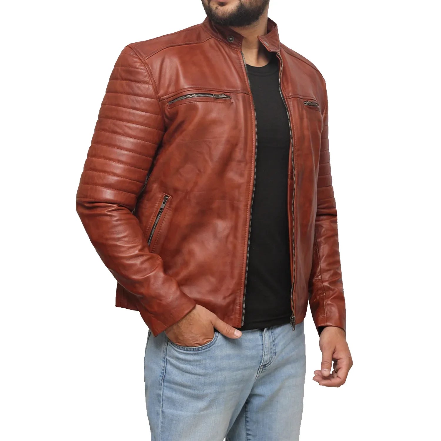 COMPOSED WITH CHARISMA: No one can cross you when your jacket is shaped in a perfectly fit size, crafted with unmatchable expertise. Therefore, we have ensured the fabrication of this masterclass Mens Tan Brown Cafe Racer Jacket of high standards as it's supposed to be.