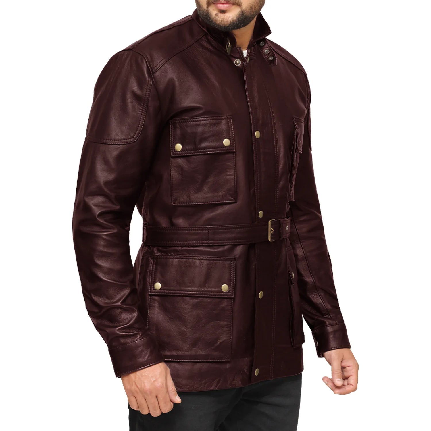 No worries and thoughts of discomfort align with the Men's 3/4 Length Maroon Leather Jacket as it incorporates a relaxing viscose lining on its inner side.
