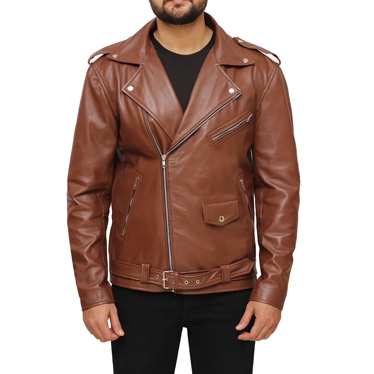 SUFFICIENT FOR COLD: From the interior, the Brown Motorcycle Mens Leather Jacket is as soothing as it is stunning from the exterior as it features a stitched polyester lining that helps to keep you warm and comfy around the clock.